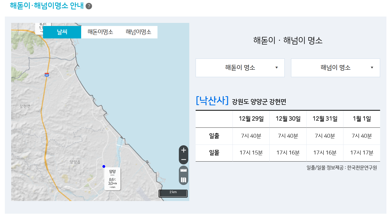 일출, 그리고 일몰장소를 확인 할 수 있습니다.